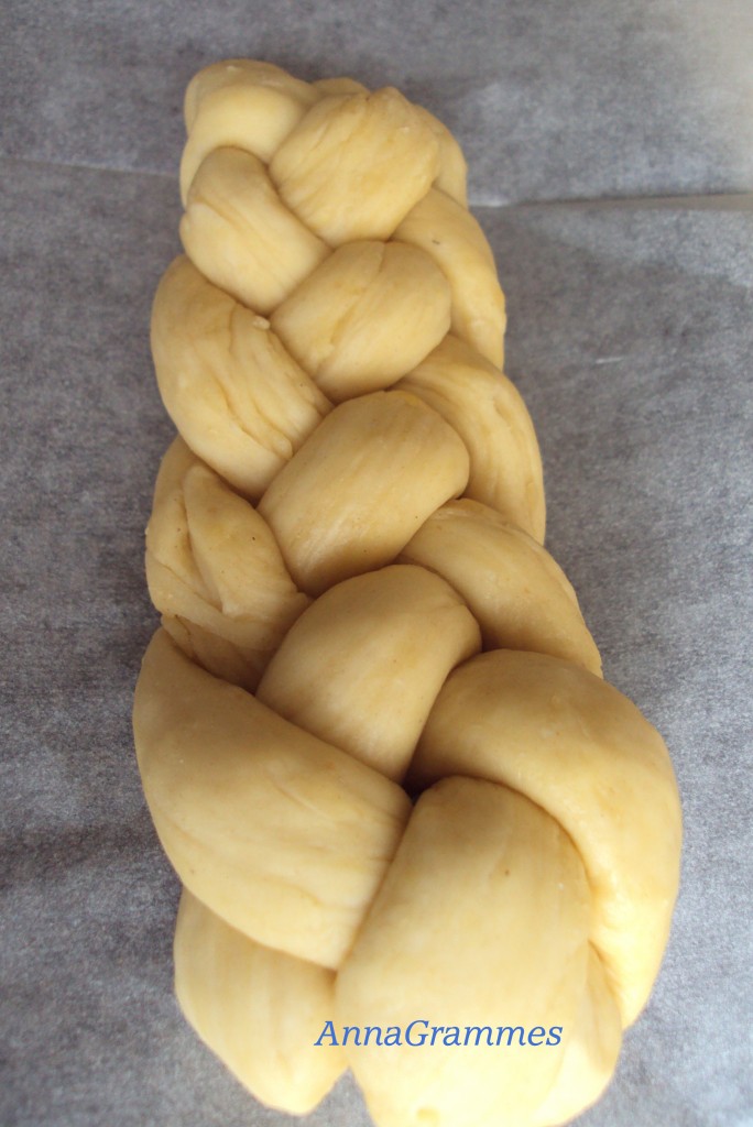 Tresser à présent votre pain (vous trouverez en dessous de la recette un tutoriel en photos pour tresser des hallots à 4 branches).