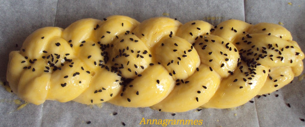 Dorer les hallot avec cette préparation et parsemer de graines de sésame, graines de pavot ou de graines de nigelle. Là encore c’est facultatif.